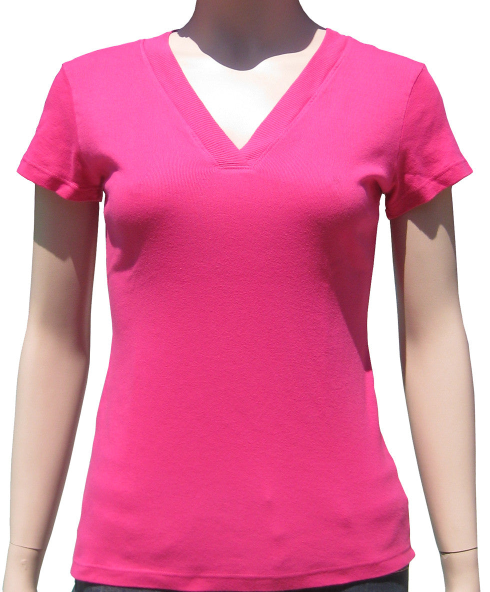 / Petite Size - Solid Ribbed V neck Short Sleeve T - Candy