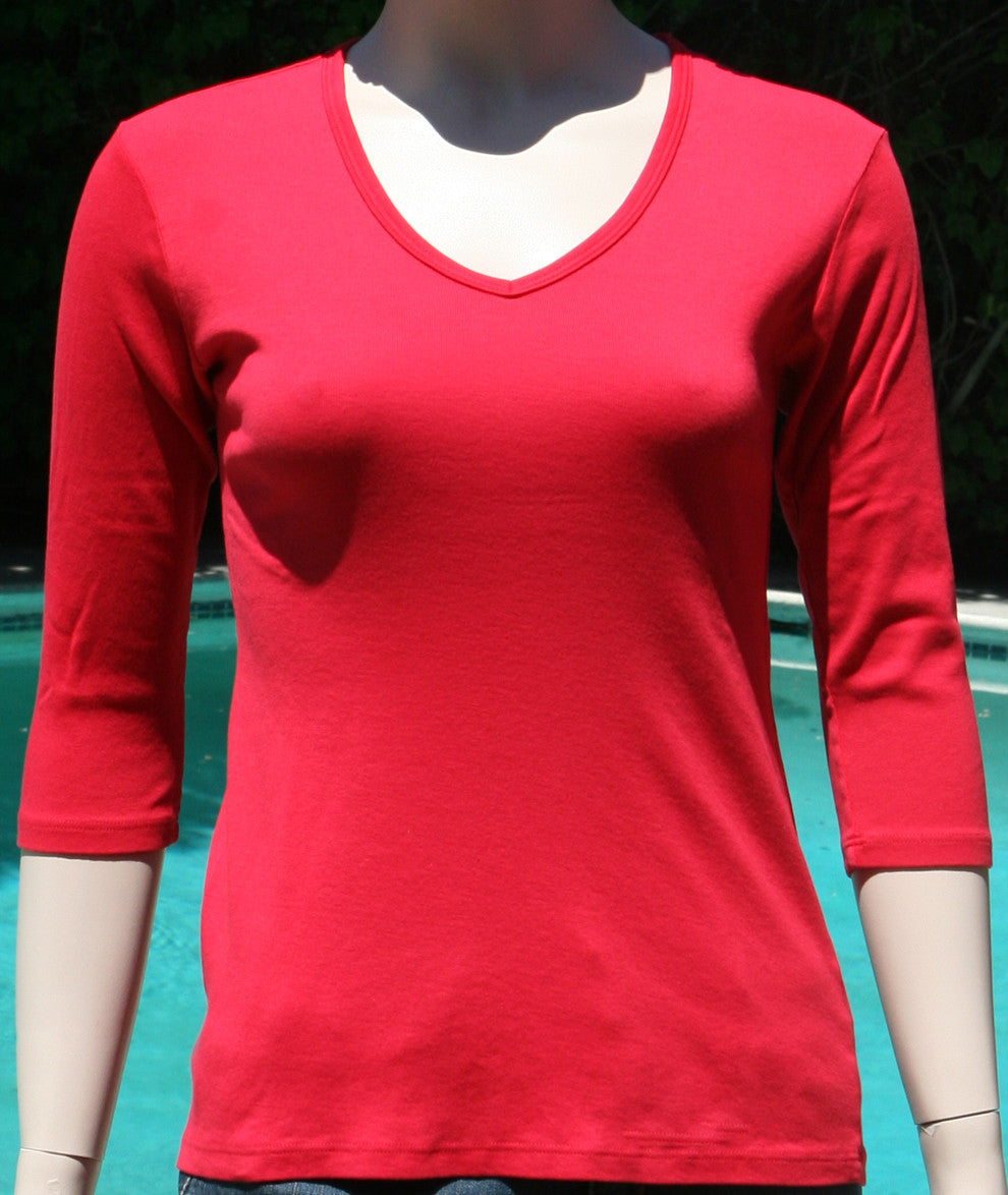 Solid V-Neck Top - Red