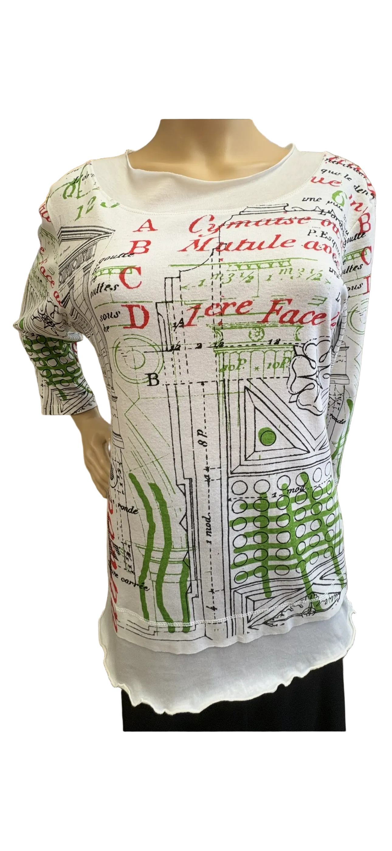 • 3/4 sleeves• Layered Hem Roll up round neck top White • Exclusive print• 100% Cotton (Rib 1X1)• Imported