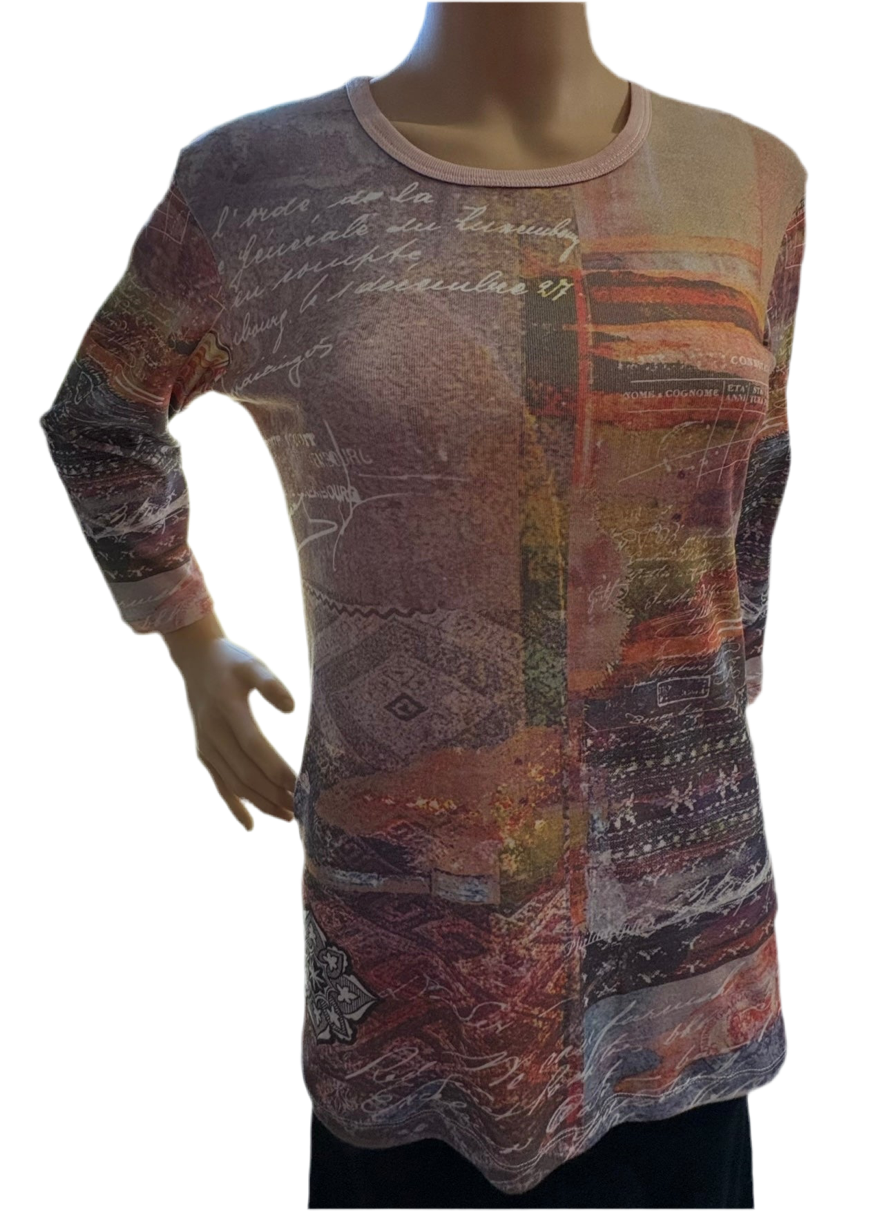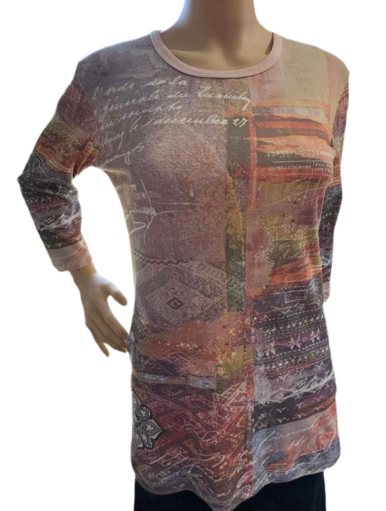 • 3/4 sleeves• Crew neck top• Artistic full color print - White background• 100% Cotton (Rib 1X1) • Imported