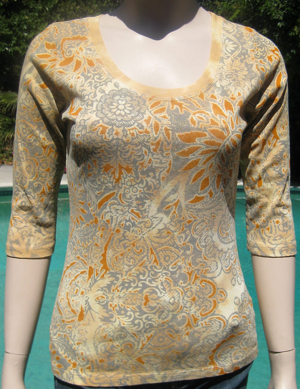• 3/4 sleeves• Ribbed round-neck top in Gray/Curry combo• 100% Cotton (1X1 Rib)• Made In USA