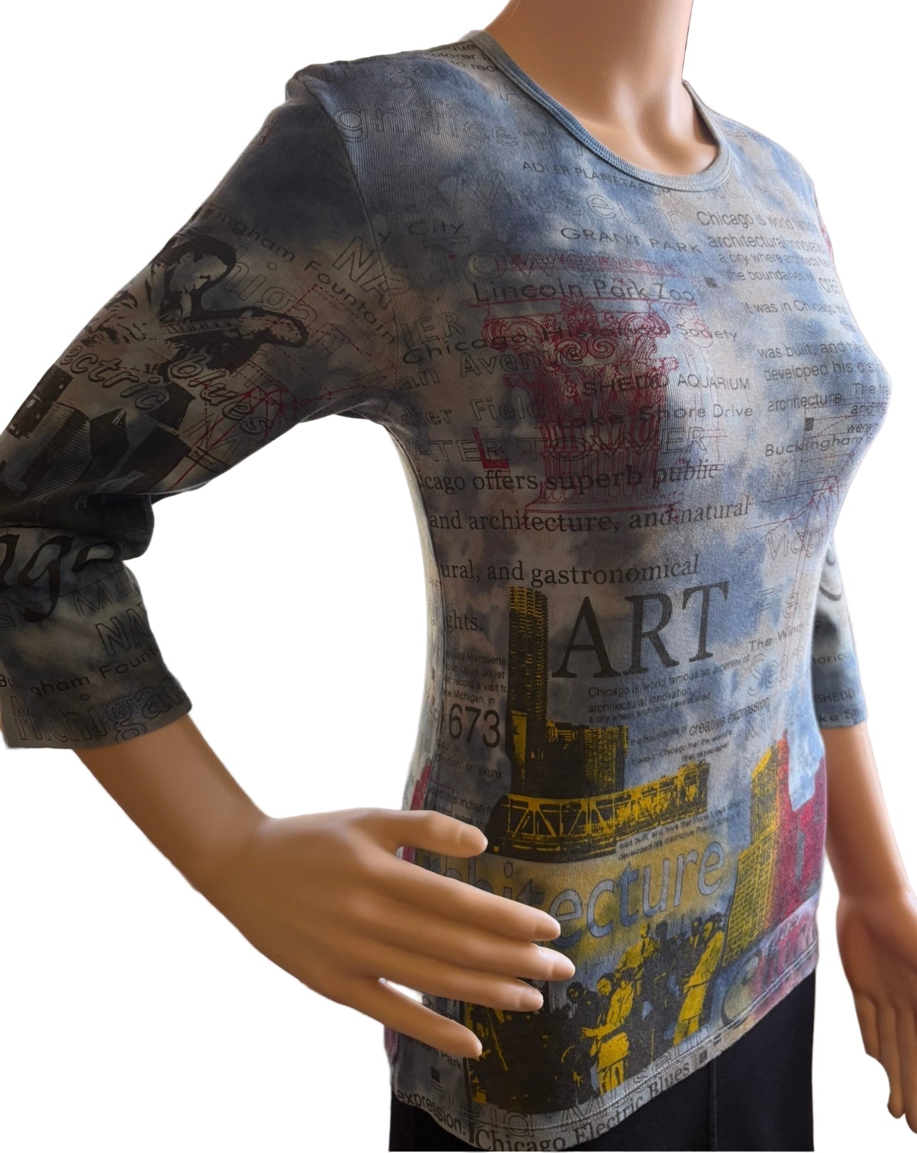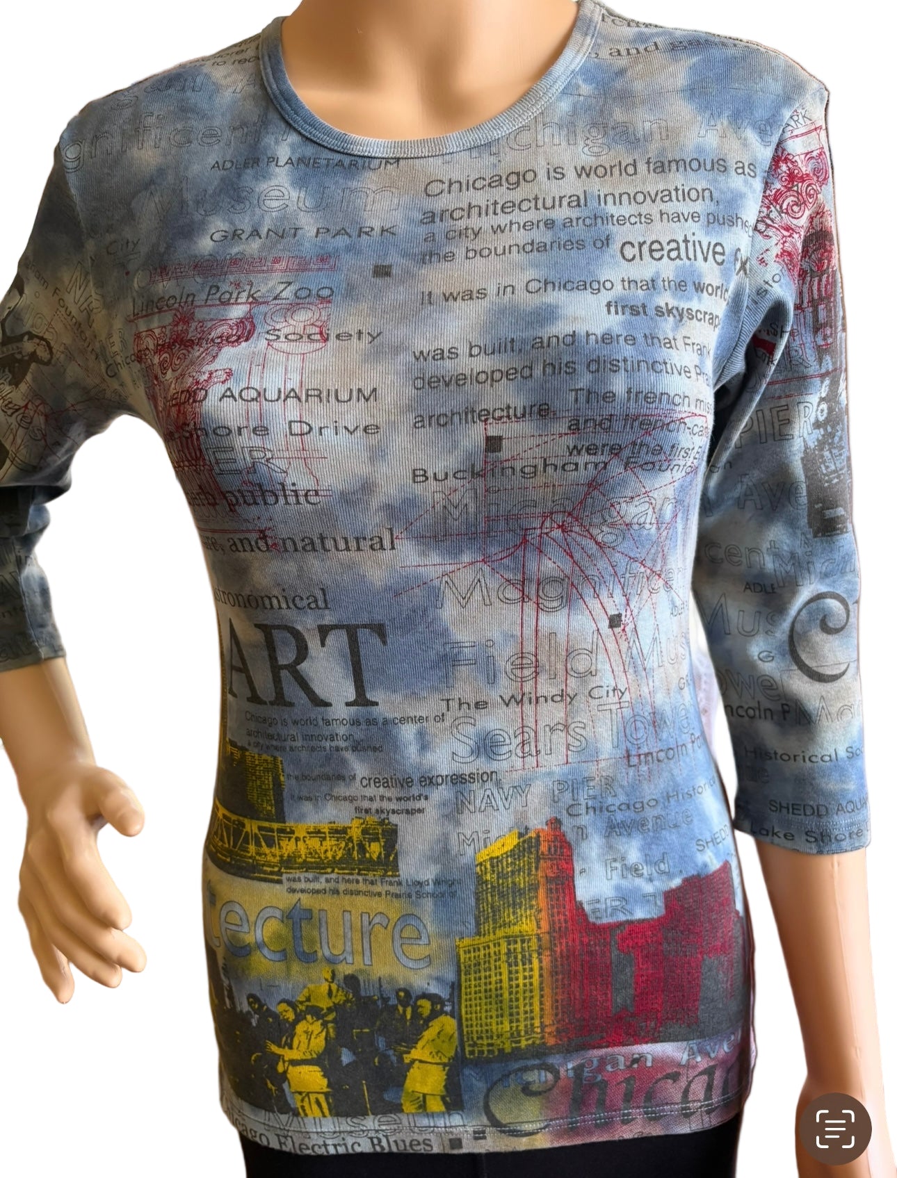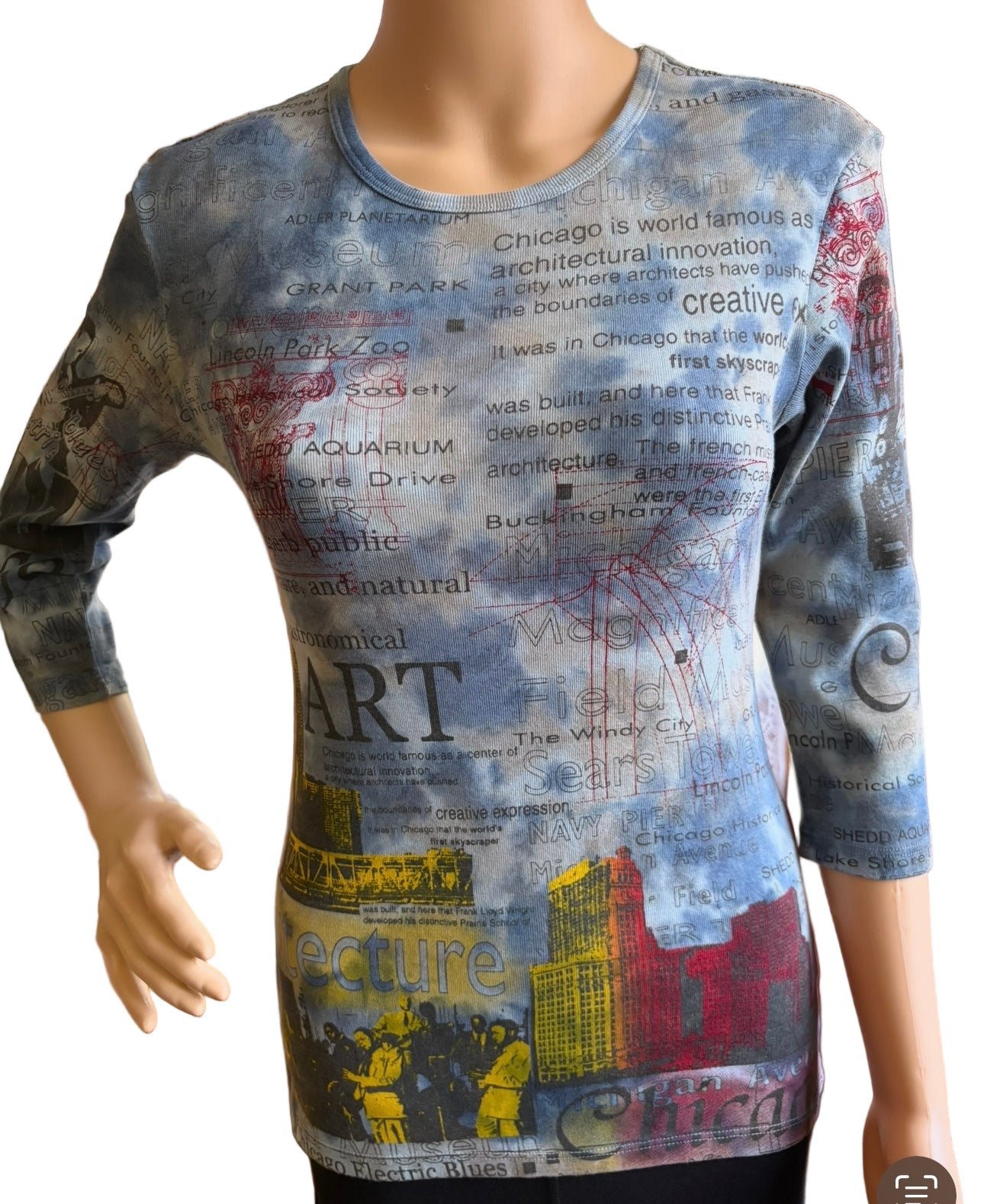 • Chicago Architecture 3/4 sleeve• Crew neck• printed top in blue • 100% Cotton (1x1 Rib)• Made in USA