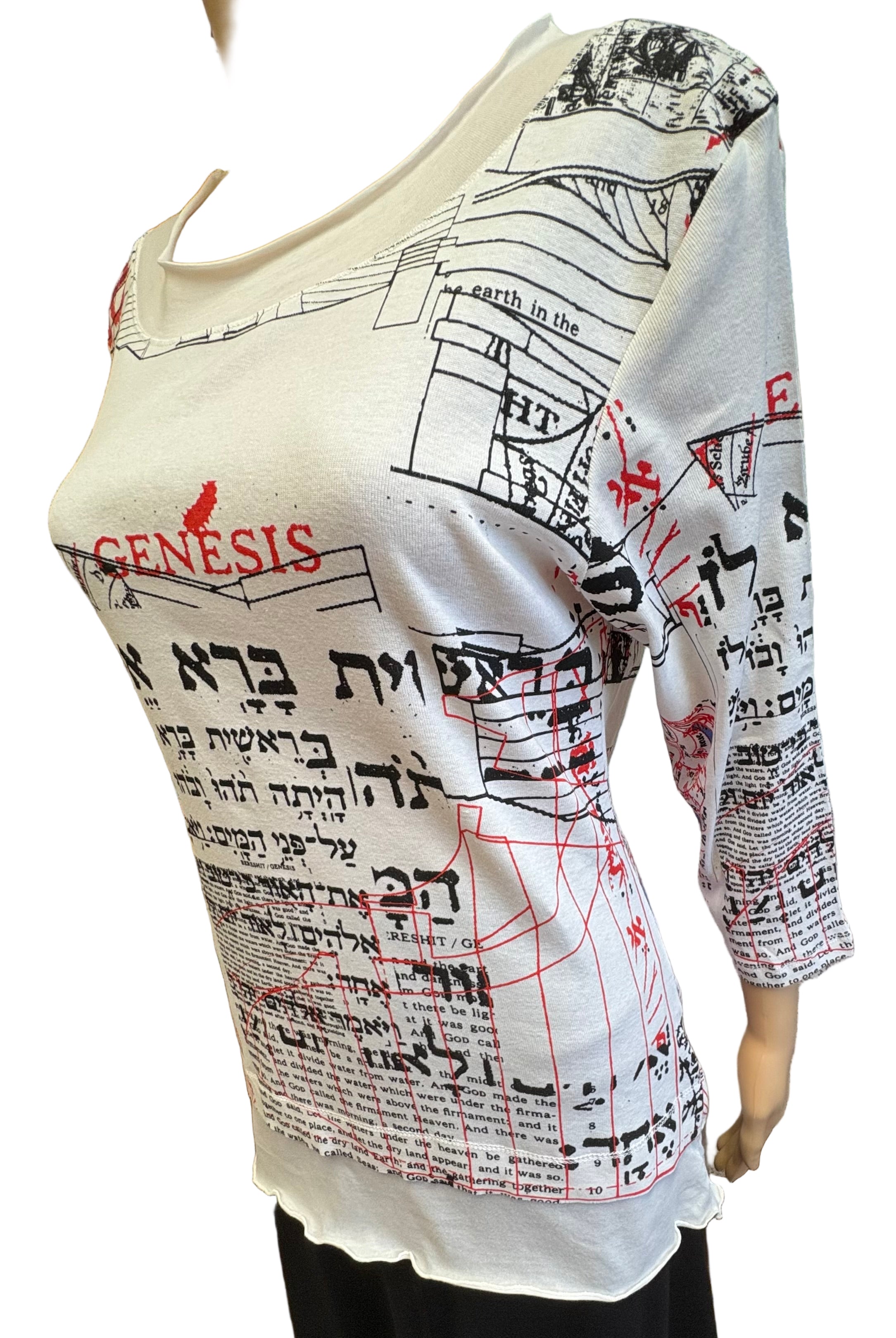 • 3/4 sleeves• Layered Hem Roll up round neck top White • Exclusive print• 100% Cotton (Rib 1X1)• Imported