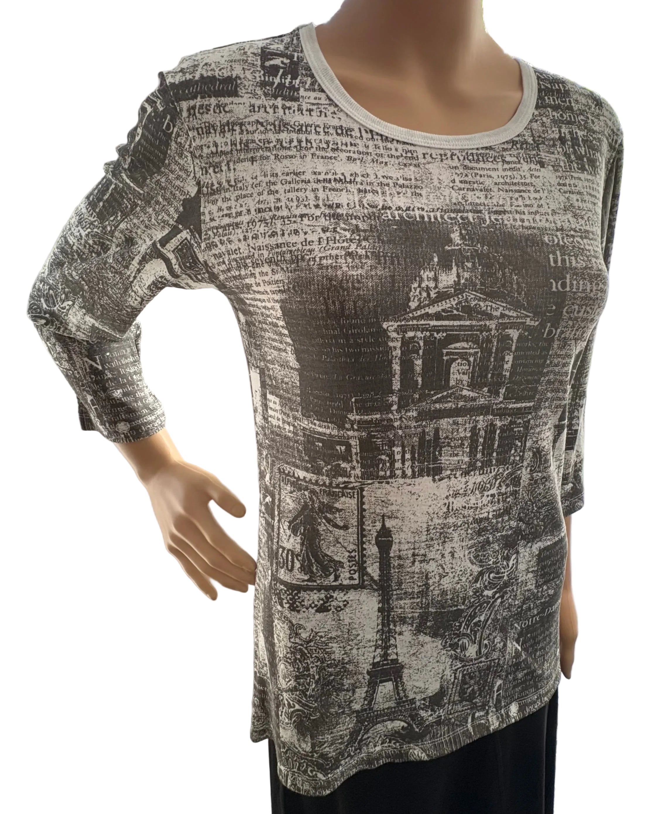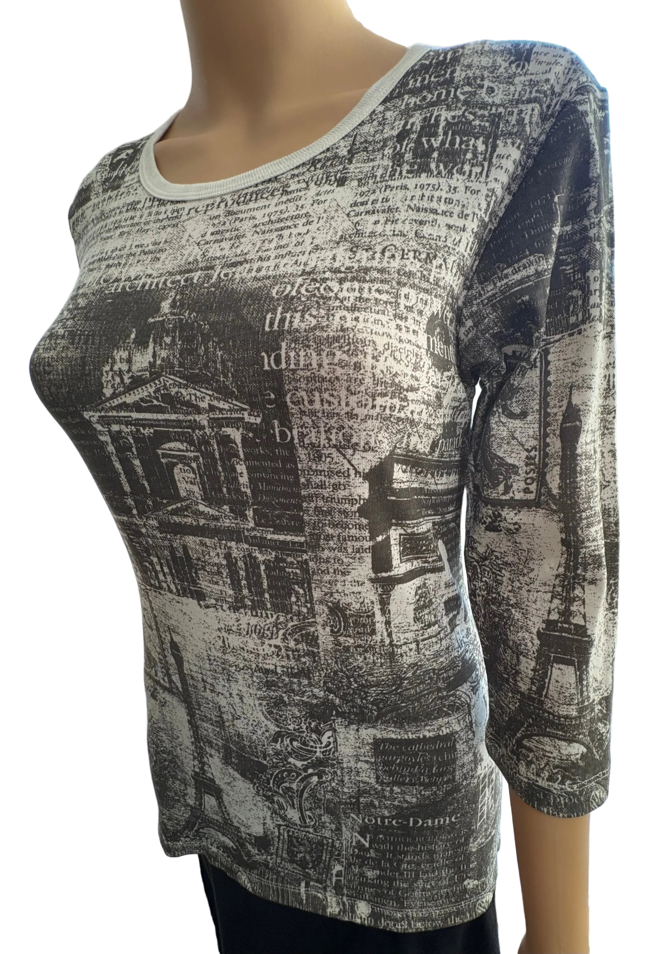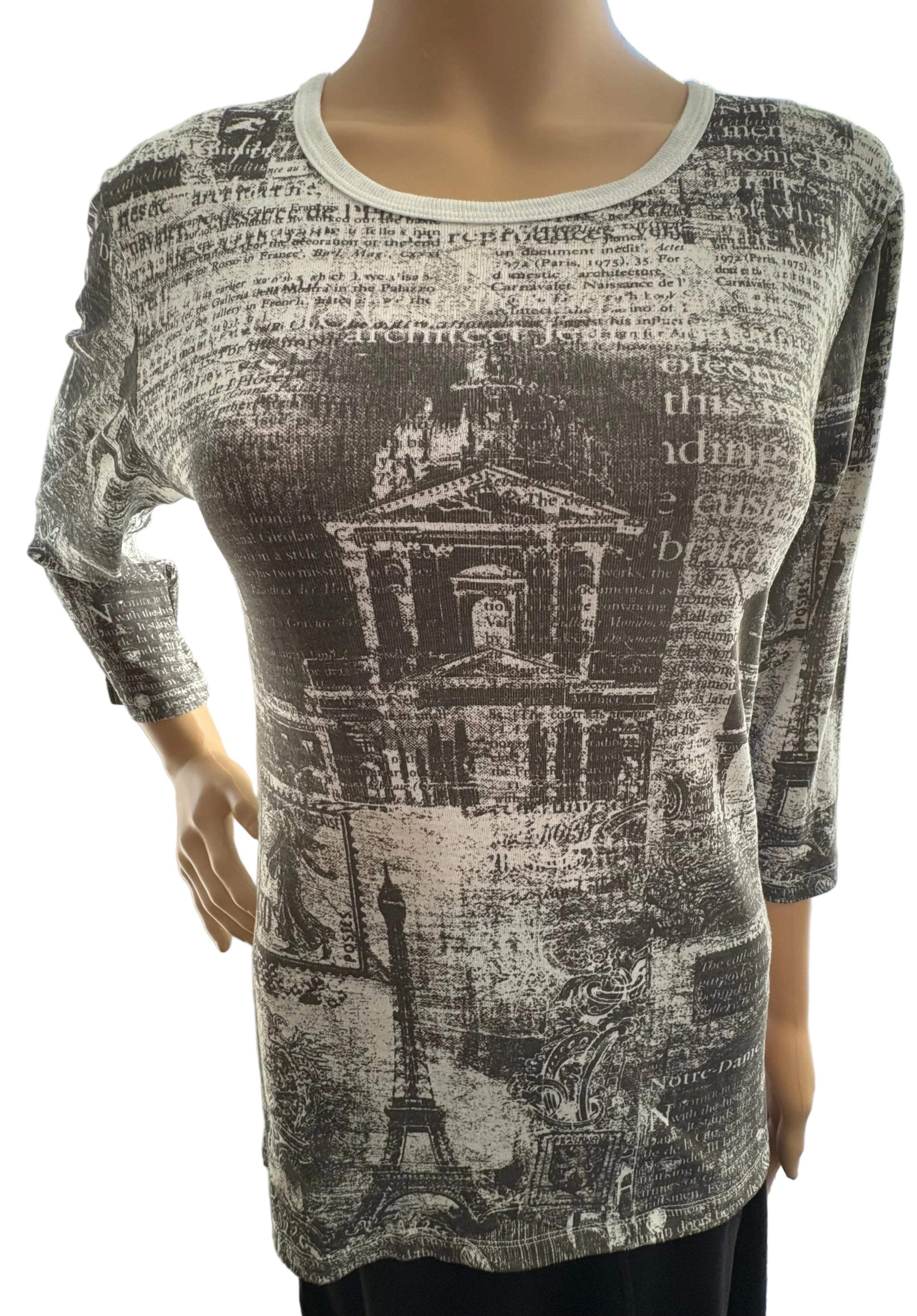 • 3/4 sleeves• Crew- neck top• Artistic print in White • 100% Cotton (Rib 1X1)• Imported