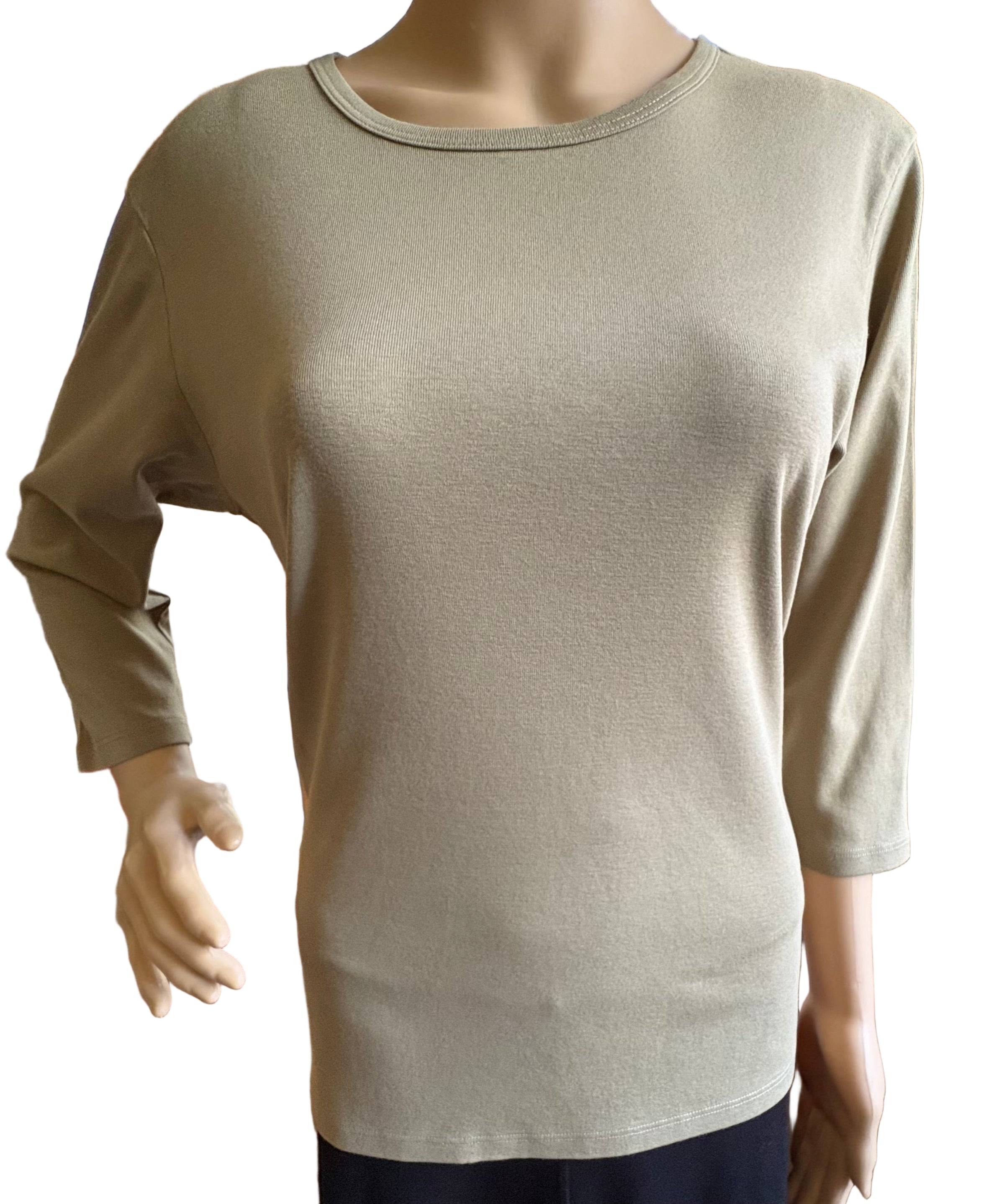 • 3/4 sleeves• Ribbed round-neck• Garment dyed top in Khaki • 100% Cotton (1x1 Rib)• Made In USA