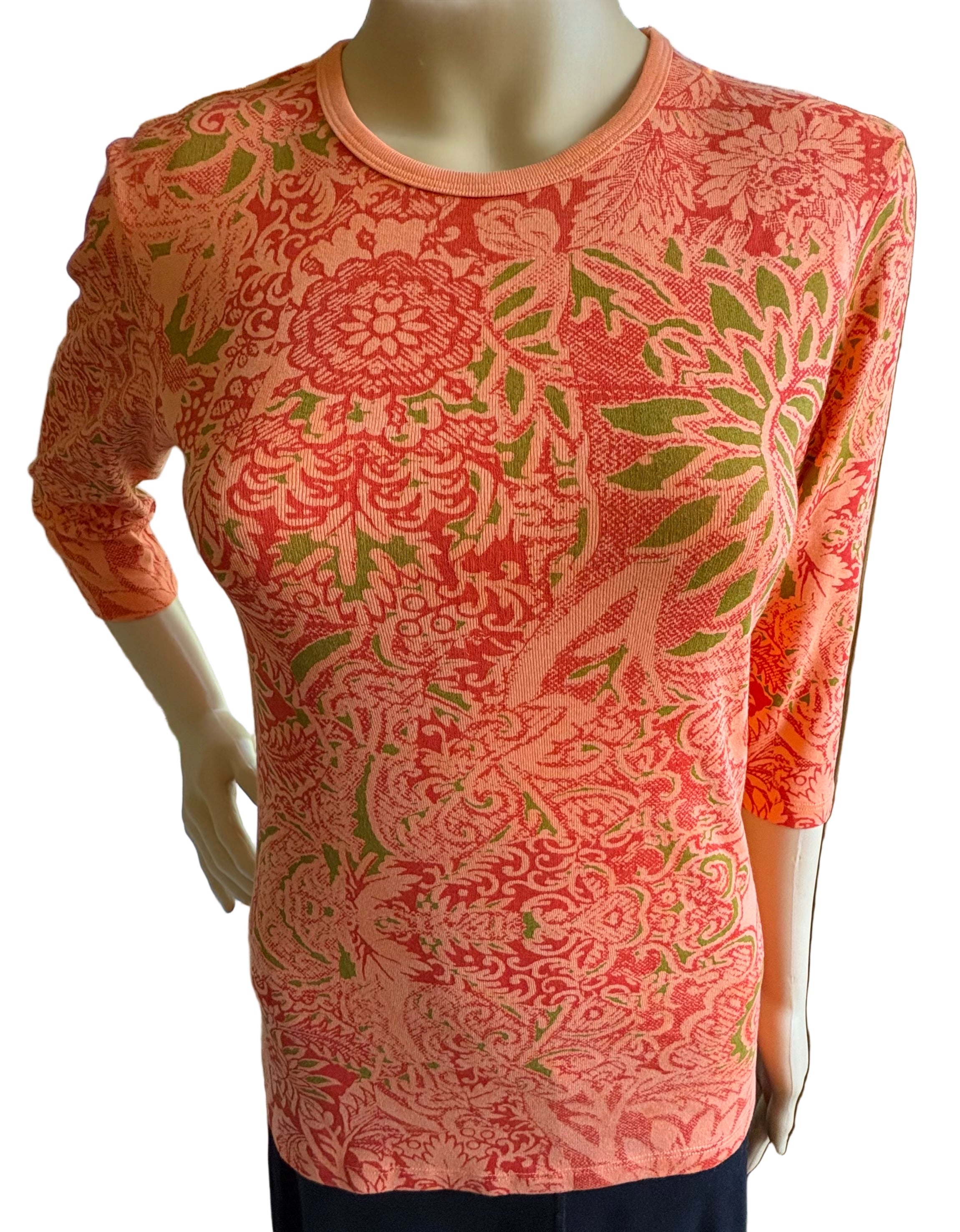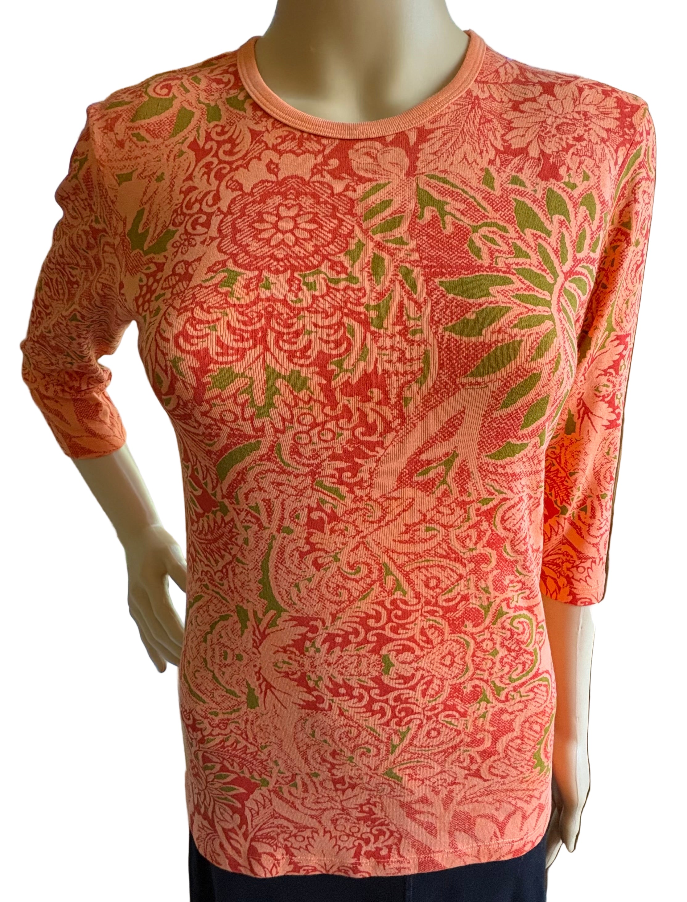 • 3/4 sleeves• Round neck• printed top in orange color• 100% Cotton (Rib 1X1)• Made In USA